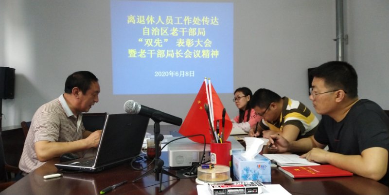 首先,王治国同志传达中组部老干部局和自治区老干部局双先表彰暨老干部局长会议精神和中组部老干部局、自治区老干部局2020年老干部工作要点,以及老干部局部署关注中组部老干部信息平台工作部署,老干部工作人员组织老同志关注用好“离退休干部工作”“内蒙古离退休干部党员之家”微信公众号。