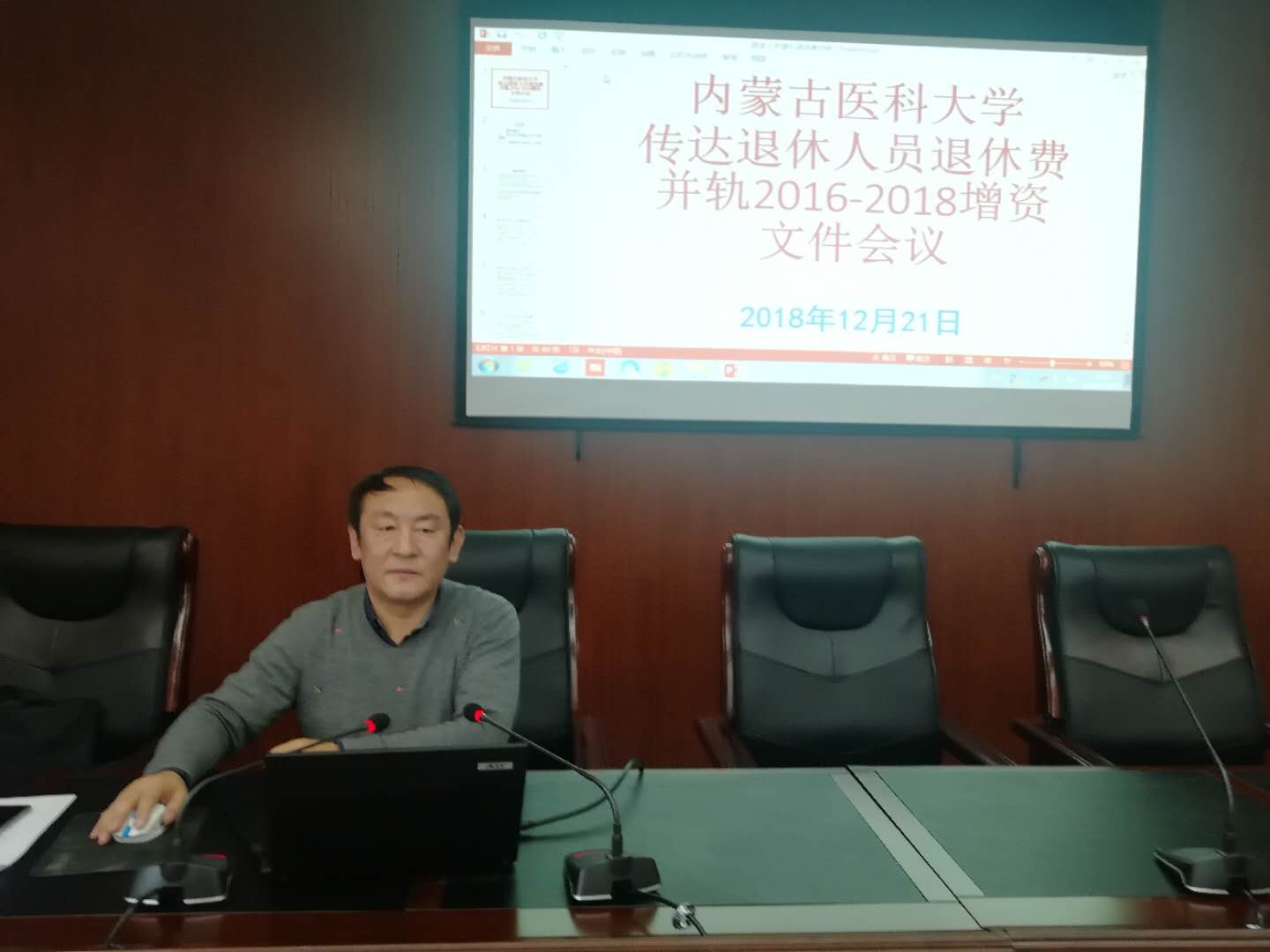 离退处召开退休人员退休费并轨增资文件传达会议